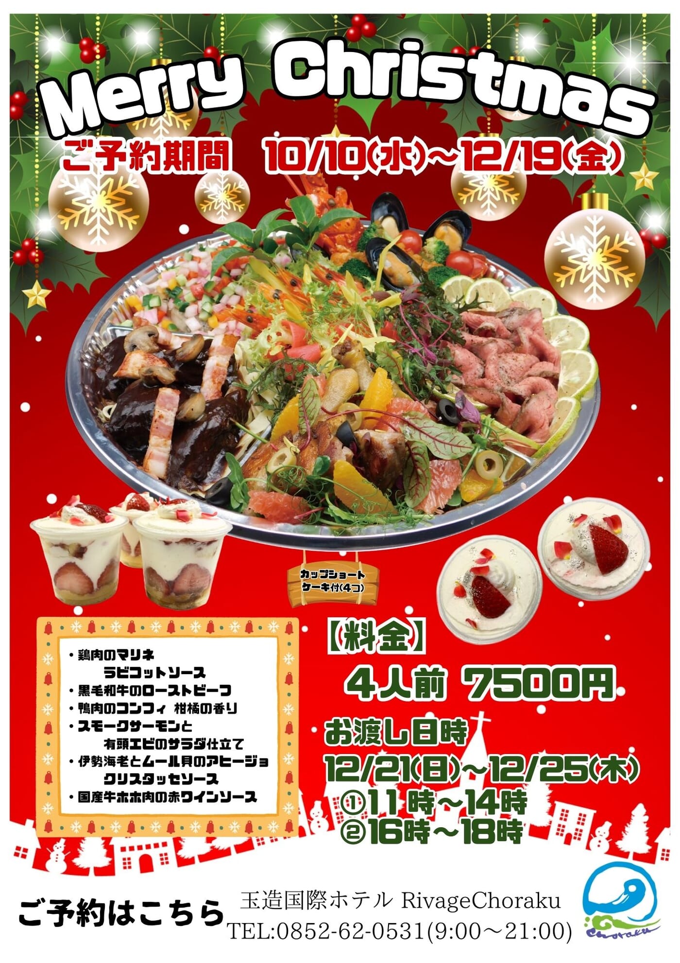 日頃より玉造国際ホテル Rivage Chorakuをご利用いただき、誠にありがとうございます。 当ホテルでは、クリスマス期間限定 ...
